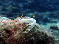 はいさい!!ひろあきです!!今日は粟国島へ遠征予定でしたが、うねりが大きく断念してケラマへ行ってきました^-^一緒に潜ってくれたメンバーは昨日に引き続いてのタッキーとお久しぶりのエロッチとチアキさんの3名です!!久しぶりの船の揺れに若干酔いながら(笑)ポイントに到着!!今日はトウマ№2・ドラゴンレディー・トウマ№1の3ポイントで潜ってきました。今日はどこのポイントも透明度抜群☆30mくらいはぬけてましたよー。水中で動きを止めると寒いということでひたすら泳ぎながら小物探し。ウミウシや幼魚を探しながら水中探索♪南国のクリオネ・ムラサキウミコチョウや黄色がキレイなシラナミイロウミウシなんかが見れました。ドラゴンでは久しぶりに深場のコックピットまで遠泳してきました。羽とは違ってコックピットはまだしっかりと形が残っていましたよ~。寒さと戦いながらラストダイブ!ケラマハナダイは目がカラフルでキレイな顔をしていました。ユラユラゆれているハダカハオコゼもゲットできましたよ^-^船の上でステキな出逢いもあったし今日もワイワイ楽しかったですね!!明日からも楽しんでいきましょう~☆☆ |