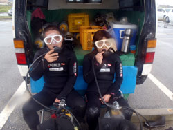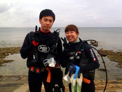 10:30~サンゴ礁体験ダイビング 山口さん みちはるさん:初めてのダイビングですごく感動しました。次回もぜひまたやってみたいと思いました。 あきこさん:初めは怖いと思ってたけど、サポートがしっかりしていて後は安心して景色を楽しむ余裕まで出来ました!とても楽しかったです。写真も楽しかった!! |