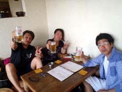 どうも、タクです。今日は慶良間です!!黒田ぱぱ・まま&深谷さん夫婦&早坂さんのお二人と一緒です。まずはカミグスクでエントリー。地形と魚影が一度に楽しめるポイント!まずスカシテンジクダイとキンメモドキの群れを見に行って、青い窓を見に行きました☆そのまま穴へ入るポイントへ・・・。人いっぱいで濁り濁りしてましたが、穴の中は光が入ってキレイでした☆☆ん~また潜りたいポイントですな♪2本目はアカヤーでエントリー。ここではナポレオンがでました!!!!しかし!!!!!見たのは俺とゲスト一人・・・他のゲストはすこし離れてて見えず(涙)他にも4種類くらいクマノミを見てエキジット♪三本目はゲスト減って、マンツーマンでタマナーファームへ。昨日カメがじっくり見れなかったので、カメリベンジです!!!!エントリーしてしばらくすると、小さめのタイマイ発見☆食事中でまったく逃げなかったです(^^)なのでじっくり見れました。そのあとはカメ以外の生物をじっくり撮影♪マンツーマンだったので思う存分撮れましたね~。他にも二匹のカメも見れて、リベンジ成功♪さ~~今日も飲むぞーーーーー!!!!!! |