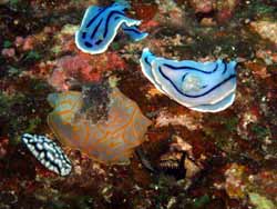どうも、タクです。今日は瀬良垣でダイビングです。カズさん、りえちゃん、ユタちゃんの三人です。一本目はミニドリームホール。地形ガッツリ楽しんできました。ユタちゃん大嫌いなアカマツカサがたっくさんいましたよ~(笑)すこし濁りもありましたが、そのぶん魚がワシャワシャ群れてました☆続いて2本目はアウトリーフで卑猥なダイビングしてきました(笑)ナマコをウェットスーツにつっこんで、チ○○みたいにしたり、カズさんにはバブルコーラルを触って、何カップくらいかを教えていただくという大仕事をしてもらいました(笑)ありがとうございます。船の上では、りえ画伯が女子が絶対書かないであろうウ○コの絵を書いてたりして、笑いっぱなしのAMでした(笑)PMはホーシューへ。すこし流れがありましたが、馬のヒヅメをぐるっと周り、二ヵ所のアーチをくぐってきました。もちろん暗い穴の中にはアカマツカサがいっぱい(笑)ユタちゃん嬉しそうでなにより(笑)そしてウミウシ大フィーバー!!!右の写真のとおり、一気に見つかったんです(笑)ハリセンボンもやたら多く、最後はみんなで追いかけてエキジットです。さ~帰ったらナイトダイビングですよ~~~。 |
