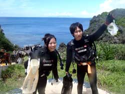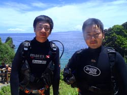 青の洞窟 体験ダイビング 黒田さん 中川さん:今日はスキューバ初体験ですごく不安がありましたが、インストラクターのトモさんが近くにいて親身に接していてくれて、とても楽しかったです。またスキューバしたいと思いました。 黒田さん:スキューバダイビングを初体験して今まで見る事が出来なかった世界を知ることが出来、感動しました。今日の体験でライセンスを取ろうか悩んでいます(笑) |