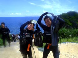 青の洞窟体験ダイビング トシさん&ミホさん:初めての沖縄でのダイビングとても楽しかったです。インストラクターの方も親切でいい思い出ができました。ありがとうございました。ありがとうございました。また来たいと思います。 |