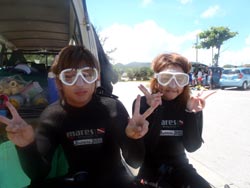 はいさい!!なすびです★いやー、台風接近中ですよ!!だいぶ風も強くなった来ました!!!そんな中、今日はなんと!!新たにダイバーが2名誕生しました☆今日ダイバーになったのは、とても仲良しなゆいさん&みやさん♪2人とも初ダイビング!!!台風接近中と言う事で、二日間で頑張りました!!!初めてのダイビングで緊張もある中、色んなスキルに挑戦です!!!2人ともマスクのスキルに苦戦しましたが、ガッツで乗り越えました^-^浮力調整の練習や、泳ぐ練習もしてかなりダイバーらしくなりましたね☆2人ともスキルがとても憂鬱そうでしたが、バッチリ全スキルをクリアして、無事二日間でOW合格です♪おめでとー!!!!感覚を忘れないうちに沢山潜って、たくさんダイビングを楽しんでねー!!! |