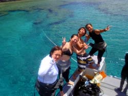 8時 Wコース 原田さん 2名 ゆうこさん:ダイビング初めての体験!!ドキドキで途中でやめよっかなーと思ったりもしたけどタクちゃんが優しくサポートしてくれたおかげで徐々に慣れてきて後半はすっごく楽しかったです。いい思い出が出来ました。ありがとうございました。 ともみさん:初めてのダイビングで最初から最後まで不安だったけど体験して、またやってみたいです。タクさんのサポートも面白くて笑えました。イルカに教わったバブルリング?キレイで見れて良かったです。イルカのも見たいです。 |