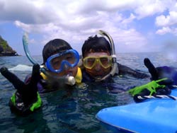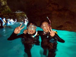 15時半 洞窟スノーケル×2 佐々さん けんじ&ゆうこ:当日予約にも関わらず親切にして頂けてとてもうれしかったです。青の洞窟は想像以上にキレイでした。新婚旅行のいい思い出になりました。ありがとうございましたー。おんちゃんサイコー!!! |
