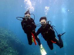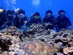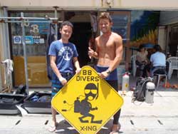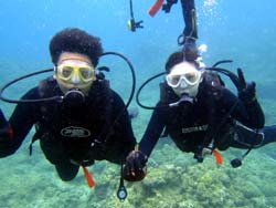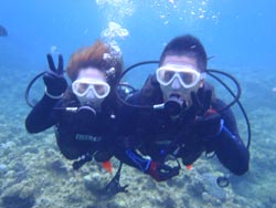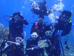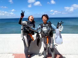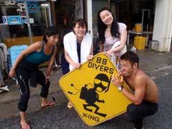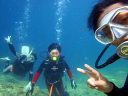 ケラマ体験ダイビング☆ならもとさん2名 かずみさん:二回目の体験でやっと怖くなくなりました!(*´∀`)カメさんもいっぱい見れて、ちょーたのしかったですっ。たくちゃん、ありがとうございました☆*゜また来ます!!!! ひろあきさん:海ガメを間近で見れて感動しました。沖縄に来るときはバブルボックスダイバーズでダイビングします。今日は一日ありがとうございました!!慶良間サイコー!! |