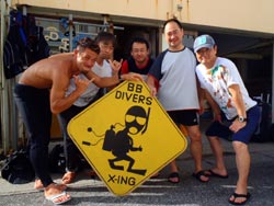 10時 体験ダイビング こじまさん ライム:美ら海水族館の100倍は面白いですね!ありがとうございました! まこっちゃん:彼女に振られて落ち込んでましたが、たくさんの魚たちとキレイな女性にかこまれて元気でました!次は彼女作ってきます ゆーじ:ニモがとても可愛かったです!天気が悪かったですが、水中はとてもキレイで感動しました!!来年も来たいです!! ブル:初めてのダイビングでしたがインストラクターの方々が優しく丁寧に教えていただけるので初心者の方でも安心して潜れます!!たくさんの魚達と一緒に泳ぐことができ、良い思い出になりました。また来ます! |
