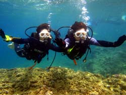 体験ダイビングE×2 後藤さん みう&ちーちゃん:初めての体験ダイビングで不安だったけどサポートがハンパなくて、100%楽しました!潜る前はいらないと思ったけどやっぱりカメラかりておけばよかった。海の中は色んな生き物がいて、綺麗な青色で大満足でした!!また来たいです。 |