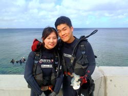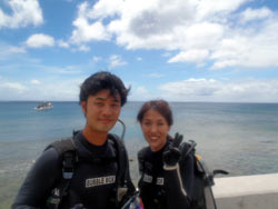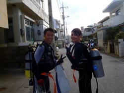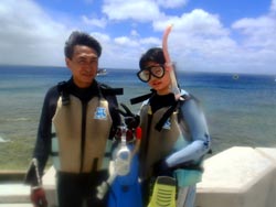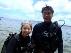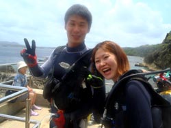 8時体験ダイビング Cコース 奥野さん 鈴鹿さん:今日は、ありがとうございました!!初めてダイビングするので楽しみな反面、不安も大きかったですが、すごく最初から丁寧に教えてくださり、水中でもずっと見てて下さったので、安心して楽しめました。また来年も沖縄に来て、こちらでダイビングさせてもらいたいです♪ダイビングはまりそうです^-^!! 裕也さん:今日はありがとうございました。ダイビングは人生で2回目だったけど今回のほうが、かなり楽しかったです。直接魚に触れたり魚に噛まれたり思い出に残る経験ができました。また沖縄に来た時はダイビングしたいと思います!! |