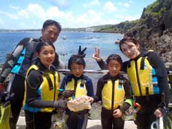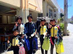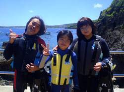 体験ダイビング&スノーケル わきたさん ひなたちゃん:とってもキレイで楽しかったです☆ ひろみさん:本当に、楽しく、又是非来させて下さい だいすけさん:最高でした!! |
