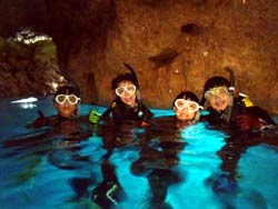 10:30~ 青の洞窟体験ダイビング 扇谷さん:最初は怖かったけれど、優しく丁寧に教えて頂いたので潜る事が出来ました。初めての泳ぐ事の出来ない私。絶対に無理だと思っていました。海の中で空を飛んでいるように感じました。とても楽しかったです。 |