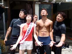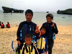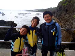 ☆11時~ 体験ダイビング 山田 様☆ たつや君♪天気が悪かったので、入れるかどうか心配だったけど、しっかり潜れることができて良かったです。水中の神秘的な世界を見る事ができて本当にいい経験になりました。機会があったらまたやりたいです。 みことちゃん☆最初は雨が降っていて、「入れるかな?」と思っていました。でもちゃんと潜れて良かったです。魚がたくさんいて、エサをあげることができてよかったです。海もキレイで嬉しかったです。またやりたいです。 まさしさん☆子供たちにとってもすごく良い経験となり、非常に嬉しかったです。天候の悪い中、とても親切に教えていただきありがとうございました。機会があったらまた来ます。 のりえさん☆初めてのダイビングでしたが、台風が来ていてできないかと心配でした。でも無事体験できました。とてもキレイで、魚も近くで触れてとても良い経験ができました。家族4人大満足のダイビングでした。ありがとうございました。 |