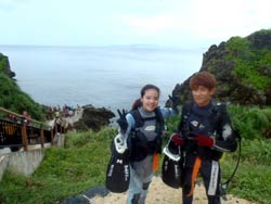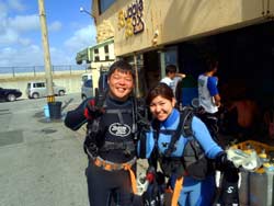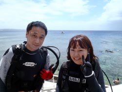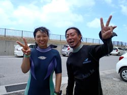 8時 サンゴ体験ダイビング 横山様 ゆうき:初めてのダイビングということで不安もあったんですが、潜ってしまうととても楽しくてあっという間に時間が過ぎてしまいました。また、ぜひ潜りたいです!ありがとうございました!! さやか:10年ぶりのダイビングでしたが、丁寧に一から説明して頂いて、とても安心しました。潜る前までは、すごく緊張してガチガチだったんですが、たくさんのキレイな魚、ニモなど見れて、緊張もほぐれ、とーっても楽しかったです☆★次は青の洞窟挑戦してみたいです*今日はありがとうございました!!☆カッパさんLOVE☆ |
