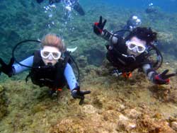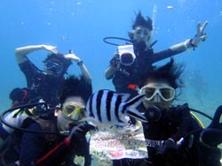 10時 サンゴ体験ダイビング 平野様 あい&けぇてぃ:世界の平和と愛を感じました!ザブーンって潜ったら、パーっと青の世界が広がっていてワー(^ー^)っておもいました。また来よーねー♪はーい☆ |