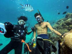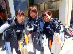 ちあきさん・いつきさん:スタッフの人が優しくおもしろく、イケメン揃いでした。またお願いします!!ダイビングが最初こわそうで不安だったけどスタッフの方が優しくサポートしてもらえました。ありがとうございました☆ |