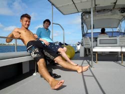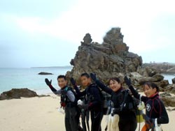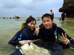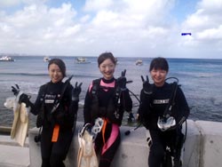 8時 スノーケル・体験ダイビング 伊藤様 伊東さん:魚がいっぱい見れたので、とても楽しかったです。初めて来たのでとてもキレイでした。テレビでしか見た事ないので来て良かったです。 |