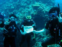 10時 サンゴ体験ダイビング 土井様 どいちゃん:初めてのダイビングでしたっ(^^)☆台風でムリかなって心配してたけどニモとかサンゴとか見れてとっても嬉しかったです♪また来ます!!! くっさん:ニモみれてよかったです☆ありがとうございました\(^O^)/また来まーすっ!!☆ チハちゃん:泳ぐことができないので不安だらけでしたがとっても楽しかったです☆ありがとうございました♪ |
