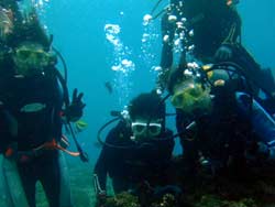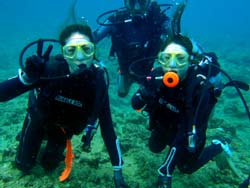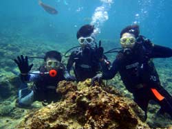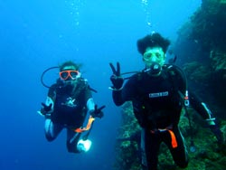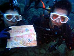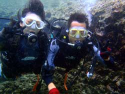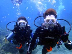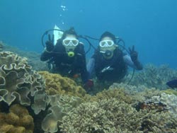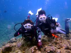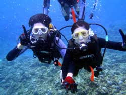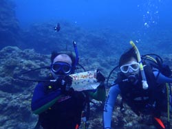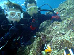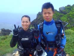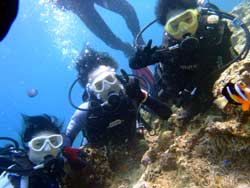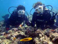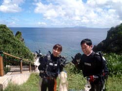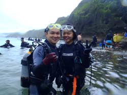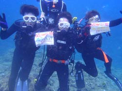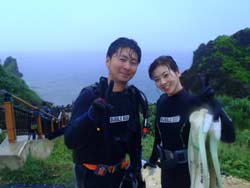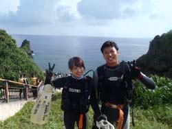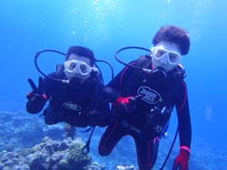 ☆8時 体験ダイビング 谷島 様☆ コウスケさん♪初めてのダイビングで、不安がすごくあったんですが、わかりやすく教えてもらい、初めてでも安心してできました。海の中はとてもキレイで魚もたくさんいて楽しかった。 マナミさん♪最初は耳抜きが上手くできるのか、ゴーグルに水が入ってきたらどうしようととても不安でしたが、スタッフの方が丁寧に優しく緊張をほぐしてくれて、潜る時には安心して潜る事ができました。とても感動的な初ダイビングとなり、絶対にまたやりたいです!!お魚かわいかった~~(^^) |