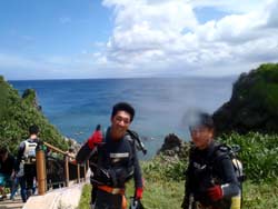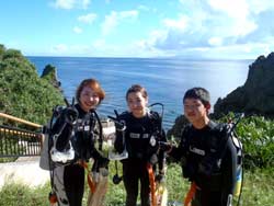 8時 青の洞窟ダイビング 小林様 ・今日は初めてのダイビングでしたが、息のやり方など説明が分かりやすくて安心してダイビングできました。スタッフさんも優しくて、とてもやりやすかったです。次、来た時もまたやりたいと思いました。 |