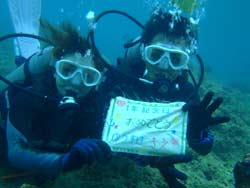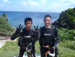 13時 青の洞窟ダイビング 三宅様 ・ダイバーさんが分かりやすく教えて下さったので、すごく楽しかったです。岩につかまってエサをやるのが難しく、潮に流されてしむのかと思って怖かったです。最後は一人で泳げたので良かったです。また沖縄に来たら色々教えて下さい。 ・初めての体験でドキドキしましたが、親切に指導して頂き安心してダイビングすることが出来ました。今まで見たことのない海の中の世界が、とてもステキでした。本当にありがとうございました。 |
