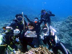 村田さん 体験ダイビング3名&シュノーケル2名 ・前回2012.6にお世話になって2回目です。また来たいと書いたコメントが家族と潜れて最高でした。また、また来たい。ありがとうございました。 ・初めてのダイビングで少し心配でしたが、とても楽しかったです。魚も海もキレイで貴重な体験が出来ました。お兄さんお姉さんもフレンドリーで親しみやすかったです。 ・初めてのダイビングで自分はあまり泳ぎが得意ではなかったので不安でしたが、なんとか最後まで泳ぎきることができた。とても、キレイな沖縄の海が見れて、とても楽しかったです。 |