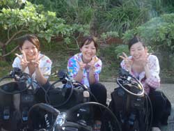 はいさい!今日はケラマでカメを探しに行ってきたよ~~うちなんチューなーおーのOW卒業かねてみんなでワイワイ女の子祭りケラマファンダイブです。ファンです。ファニーダイブです。(笑)メンバーは、ちえちゃん、わいちゃん、みゆきちゃん、ことちゃん、あこちゃん、なーおーです。あれ??女の子ばっかり?お~~~~!!!!一年に一度あるかないかの、女の子に囲まれる祭りだ~~~お~~~!!!味わなければ~~~って興奮している場合じゃない!初心者もいるので今日はのんびりですが楽しいダイビングです。カメ見たり、ハナゴイ見たり、スズメダイいっぱいみたり、ここに書けないほどの魚がわんさかでしたよ。ってか、女の子がいっぱいで、興奮ダイビングでした。あ~~今年はもうこんなダイビングないんだろうな~~~(笑)で なーおーダイバー合格おめでとう。そして仲間入りおめでとう~~!忘れないうちにまた潜りに来てね。待ってるよ~~~!!!ちえちゃん飲み会多過ぎ・・・・(笑)わいちゃん本当に上手くなったね!みゆきちゃん相変わらずお酒のCMに出ている人に似てる~~!あこちゃん来年も沖縄に帰ってきたら顔出してよ~~ことちゃん!ダイビングのセンスありだからいっぱい潜ってかっこいいダイバーめざしたら~~! |