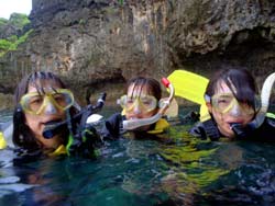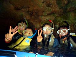 ☆10時半 洞窟スノーケル マツオカ様☆ マツオカさんファミリー♪楽しく体験できました。本当に青く感激しました。今度はスキューバにチャレンジしてみたいです。ありがとうございました。 |