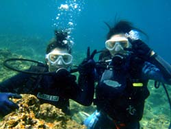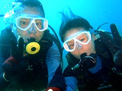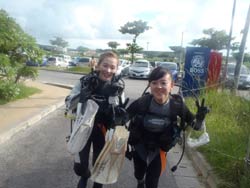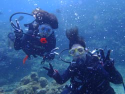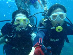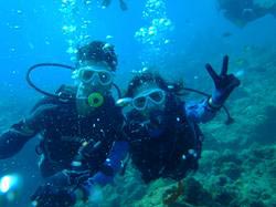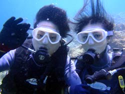 ボート体験ダイビング 山崎様 まいさん:潜る前は不安だらけだったけど実際海に入ってみるとすんごいキレイな世界で感動的でした!!水族館とかで見たような魚が目の前にいっぱいいて大興奮!また、ぜひ潜りたいです。 かおりさん:初めてのダイビングだったので、とても不安でしたが、ペースを見ながら丁寧に対応してくれたので、とても安心して体験することができました。初めて潜る海の世界は、とても神秘的でした。また絶対、経験したいと思いました。ありがとうございました。 |
