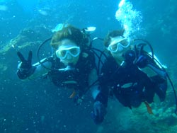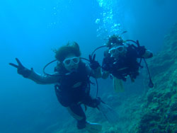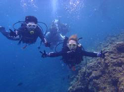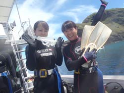 13時 青の洞窟ダイビング 山本様 かなこさん:初めてのダイビングだったけど、しっかり練習できて安心して潜る事が出来ました。魚もとってもキレイで、またやってみたいと思いました。 さやかさん:産まれて初めてのダイビングとっても楽しかったです。初めてだったけど丁寧に説明して頂いて、とても安心できました。 |