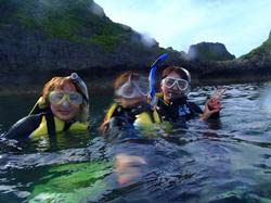8時 青の洞窟スノーケル 高橋様 まいんちゃん:洞窟が青く光っていてキレイだった。クマノミがかわいかった。ふだんは経験できない貴重な経験ができた。今度は体調をしっかり整えてダイビングをやりたい! ひろみつ君:ダイビングとスノーケルの予定でしたが体調の関係でスノーケルのみにしました。それでも満足いく体験が出来ました。付いてくれた方が面白い芸を持っていたりしたので楽しめました!またダイビングをしに来た時には、また利用させて頂きたいと思います。 |