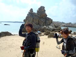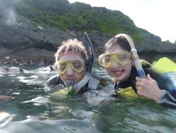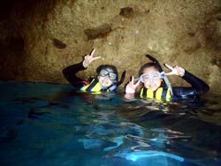 10時半 青の洞窟ダイビング+スノーケル 野崎様 なおさん:ダイビングとシュノーケル両方したけど、すっごい良かった! あずささん:最初は怖い気持ちしかなかったけど慣れて楽しく時間たつのが速かったです。 |