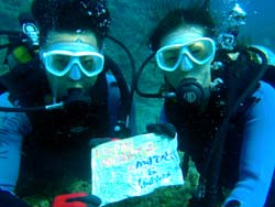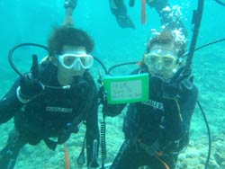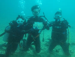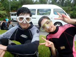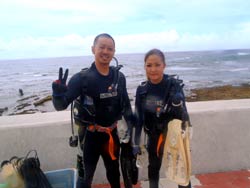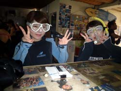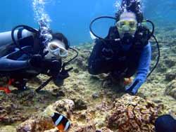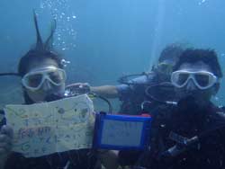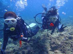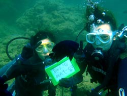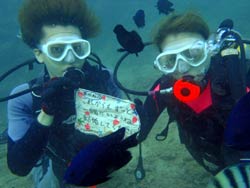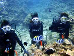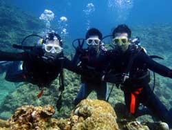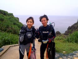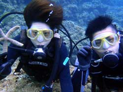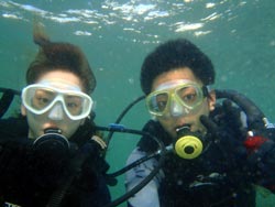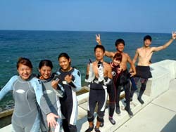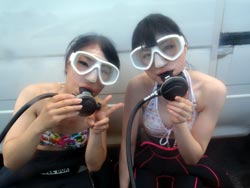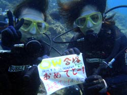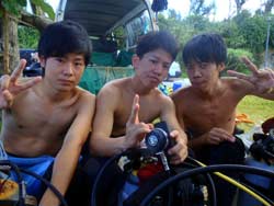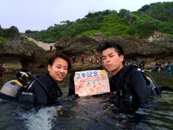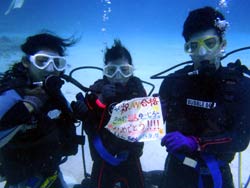 10時半~ ながい様 れいこ☆初めてのダイビング体験で不安でしたが、皆さんに優しく教えて頂き、とても楽しい思い出になりました。ありがとうございました。 ゆたか☆ダイビングは初めてで、難しいものだと思っていましたが、教えてもらっているうちに慣れてくると、楽しく感じられるようになりました。またやってみたいです。 |