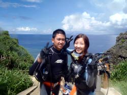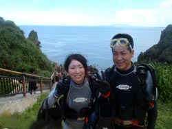10時 青の洞窟ダイビング よしかわ様 光良さん:とっても良かったです。マンツーマンで指導して頂き分かりやすく、とても良いダイビングが出来ました。写真もいっぱい撮って頂き大満足です。初めてにしては、うまく出来たと思います。次回はライセンス取得に、ぜひ挑戦してみたいと思います!! 愛子さん:青の洞窟とてもキレイでした。写真もたくさん撮って頂きありがとうございました。また沖縄に来る機会があれば是非お願いします!! |