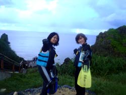 10時半 青の洞窟ダイビング&スノーケル 折口様 加奈:海の中最高でした♪楽しかったです。酔ってしまってスノーケルできなくて残念でした。三半規管鍛えて出直します。ゆうきさんありがとう!! ゆみ:青の洞窟二回目。ノリのいいユウキさんと周れたのでまじめに楽しかった!!どうもありがとうございました。 |