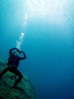 10時半 青の洞窟ダイビング 杉本様 ・思っていた以上に海の中は、とてもキレイで驚きました。多くの魚を見ることができ、とても良い経験ができました。指導も分かりやすく、沖縄に来たら、また潜りたいと思いました。 |