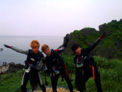 8時 青の洞窟ダイビング 谷口様 てんしん:海中がとてもキレイで感動しました!!またインストラクターさんも気さくな方でとても楽しませて頂きました。無我夢中!! こぬ:海の中、初体験楽しかったです!!!呼吸の難しさと溜息の大事さを知りました。インストラクターのタクちゃんシオンさん、ありがとうございました。一期一会!!お魚さんもサンキューーー 井上:とにかく楽しかったです。 じーちゃん:たくちゃん・シオンさん、バブルボックス最高! |