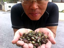 ビーチFUN☆加瀬さんと行って来ましたよ~~1ダイブ目は 昨日彼氏に告ったゆたちゃん参戦です。のんびりとお花畑を突き進みました。途中、イバラカンザシ掴みたい部長ゆたちゃんと共にかせさん、現在研修出来ているやすゆきもお箸でイバラカンザシがんばりましたが・・・結果は惨敗です。(笑)2本目は、ゆたちゃんデートに出発、かせさんとやすゆきと小さなエビやカニなど甲殻類を中心に色々探してきましたが、途中、サンゴを食べてしまうレイシガイの多さに・・・・3本目は、3人でレイシガイ駆除です。予定では40分ダイブの予定が。。。みんな夢中になりすぎ70分ダイブになってしまいました・・・・(笑)3人で一日約250ほどのレイシガイ駆除が出来ました。このレイシガイサンゴを食べてしまうので駆除しているのだけど、食べれたらもっとやりがいが出るのだけどな~~~!!食べ方解る人募集です。砂辺のレイシガイ駆除参加したい人も募集しますよ~~!結構夢中になり楽しく駆除出来ますよ。加瀬さん、やすゆき御苦労さまでした~~!またやりましょうね!!! |