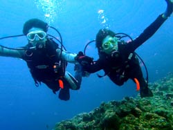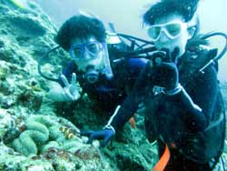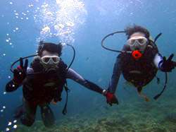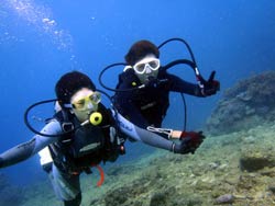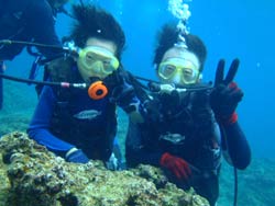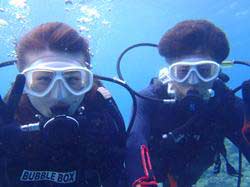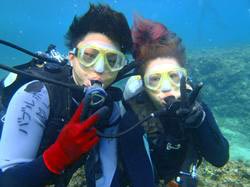 15時半 サンゴ体験ダイビング 北野さん:思っていた以上にすごく楽しかったです。今回が初めてのダイビングだったのですが、とてもリラックスして出来ました。青の洞窟に行けなかったのが残念ですが次に来た時は絶対に青の洞窟に行きたいです。 浦賀さん:魚がすごく近くてキレイでとても楽しかった。今度は青の洞窟に是非行ってみたいです。 |