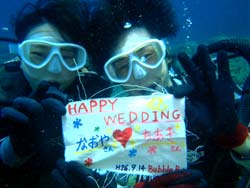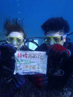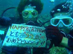 15時~ 体験ダイビング 正岡様 あきお★ちょー楽しかった!!ウニが刺さった… りの☆海がちょーキレイで最初はビビってたけど、そんなこと途中で忘れてました(笑)水中であきおのお祝いしてくれてありがとうございました♪タクさんありがとうございました。 |