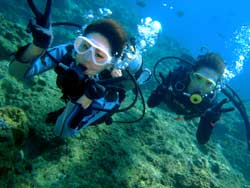 13時 体験ダイビング2本コース つちもと様 らむちゃん:初めてのスキューバダイビングだったので、怖かったですが、とても楽しむことが出来ました!お魚さんや海がとてもキレイでビックリしました。サプライズも嬉しくて泣きそうでした(笑)とても親切に指導して頂いたので安心して楽しめました。ありがとうございました。 ゆうし君:初めてスキューバダイビングをしました。海がキレイで色々な魚が見れました。感動でした。またしたいです。親切に教えて下さってありがとうございました。 |