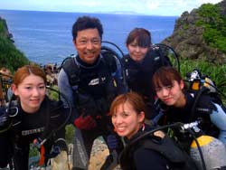 10時半~ 体験ダイビング いわまさん 中根:ダイビング初挑戦でした。TAKUちゃんに教えてもらって楽しかったです。ゆうりちゃんが可愛くて惚れそうになしました。ゆうりちゃん今度は、よろしくお願いします。 市川:初体験!!最初はビビリまくりだったけど素敵な指導のおかげでとっても楽しい時間になりました。また来年も来たいです。 鈴木:初めてのダイビング最高でした。沖縄旅行で良い思い出を作ることができ、スタッフの皆様にも感謝です。また沖縄に来た時にはまた是非やりたいです。ありがとうございました。 岩間:2回目のダイビングでした。前回(ゆーきさん、しおん君)同様、たくちゃん、ゆうりさんのおかげで楽しいダイビングになりました。良い旅の良い1ページにしてくれてありがとうございました。3年連続来れる様にしまーす! |