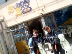 青の洞窟体験ダイビング ヒデさん:とても安心してダイビング出来ました。またお願いします。 まゆちゃん:バブルリングすごかった!!最初は怖かったけど、楽しかったです!! |