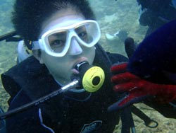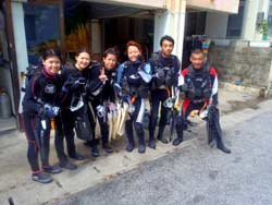 8:00体験ダイビング 西川さん コメント:最初はとても不安だったけど楽しく出来ました。色々魚の説明もしてくれたので楽しム事が出来ました。またダイビングしたいです。 |