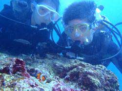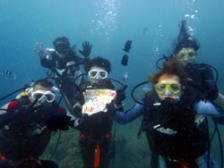 15時半 体験ダイビング 亀井様 トモフミさん★一年ぶりのダイビングで緊張してましたが、とても楽しめました。水中でバブルリングを初めて見ましたが、とてもキレイでした。ニモにも会えて良かったです。また沖縄に潜りに来たいです。 ケイタさん★とても楽しかったです。良い沖縄旅行になりました。また来年の夏も来たいです。 サトコさん★最初、怖かったんですけど、すごい楽しかったです。魚が近くて感動しました。ニモが可愛かったです。 |