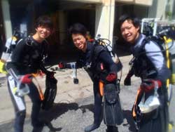 13時 体験ダイビング 門井様 シュウタロウさん★初めてのダイビングで怖かったけれど慣れてくるとたくさんの魚を見れて楽しむ事が出来ました!貴重な経験ができて良かったです!! ヨシミツさん★すごくキレイで笑ってしまいました。そしてゴーグルに水が入ってきました。器具の使い方を覚えるのが難しそうだったけど慣れると楽しかった。また潜りたい! タクミさん★初めてのダイビングは不安もあったけど楽しみにしてました。海に入った瞬間は緊張しましたが、慣れてきたらすごく海がキレイで見惚れてました。最高でした!魚もキレイで可愛かったです。ありがとうございました。 ヨウヘイさん★ダイビングはなかなかできない経験だったので、今回できてよかったです。呼吸の仕方、器具の使い方も丁寧に教えてもらったので、海に入ったときも楽にできました。これを機会に沖縄に住んでるのを活かしてダイビングをやっていきたいと思いました。 |