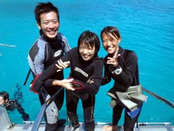 ボート体験ダイビング 茂木☆体験ダイビングでボートダイブしてきました。可愛いクマノミとたくさん出逢えて楽しかった!!来年はケラマに行こうと思ってます。インストラクターの皆さんよろしくお願いします。 つかちゃん★群馬には海が無い。沖縄の海はサイコー!!優しいインストラクターのお陰で楽しくダイビングできました。また来年もよろしくお願いします。 まさなり☆初めてのダイビングでしたがとても楽しかったです。目の前で魚が泳いでいたり、ヒトデを触ったり貴重な体験が出来ました。また来年、来たらお願いします!! 光哉★3度目の正直でケラマへ!.・・・↓↓また来年チャレンジします!!でも初めてのボートで沖へ行き、ダイビングが出来て海のキレイさを改めて実感しました。これはやめられない。 |