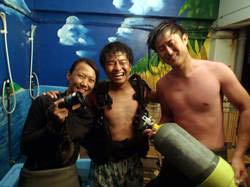 13時~ 体験ダイビング 小林さん マコト:10年振りの海で、楽しい思いが出来ました。ライセンスの目標が出来たので、一つ楽しみが出来ました。ありがとうございました。 |