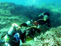 8時 体験ダイビング たまき様 タカヒロさん、カナエさん★魚がキレイでいっっぱいいて面白かった。バブルリング練習してキレイにできるようにします!!ありがとうございました。楽しかったです! |