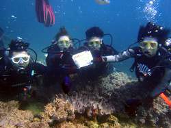 10時半 サンゴ体験ダイビング 石原様 ダイさん:今日は体験ダイビングができて、幸せでした。最初はキンチョーしましたが、先生のおかげで落ちついたらそこからはパラダイスでした。また次回も絶対お願いしたいのでヨロシクお願いします 学さん:初めて!10mまで潜る経験をしました。最初はこわかったですが、楽しむことができました。そして人魚にあうことができました。また会いにきます。 |