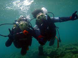 13時~ 体験ダイビング 秋山さん みどり:最初顔をつけるのが怖かったですが、私のペースに合わせていただいて、下まで潜ることが出来ました。本当にありがとうございました。またチャレンジしたいです。 ゆかり:始めは不安でしたがインストラクターの方が優しく教えて下さったので何とか潜ること出来ました。海は波が結構あって少し怖かったです。深い所は魚が沢山いてニモも可愛かったです。ありがとうございました☆ |